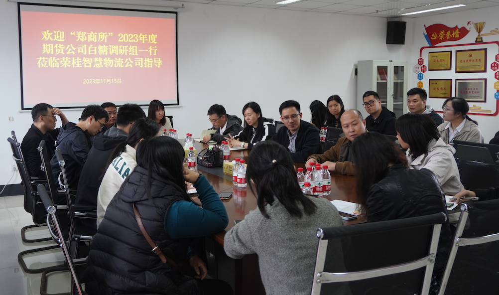 11月15日,鄭州商品交易所組織2023年度期貨公司白糖調(diào)研組到智慧物流公司現(xiàn)場(chǎng)調(diào)研。